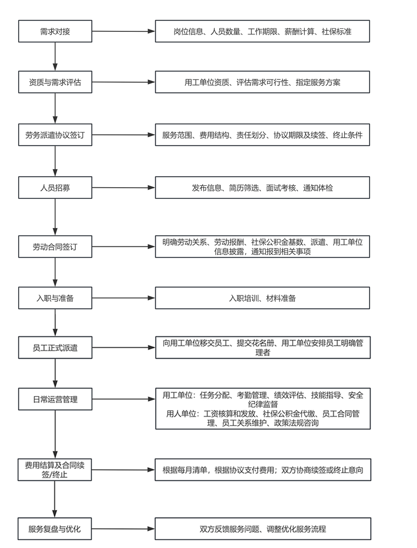 對用工單位:降低招聘、管理、社保繳納等成本,簡化人員招聘、入離職辦理、薪酬發放、社保繳納等工作流程,以及減少勞動糾紛風險。
